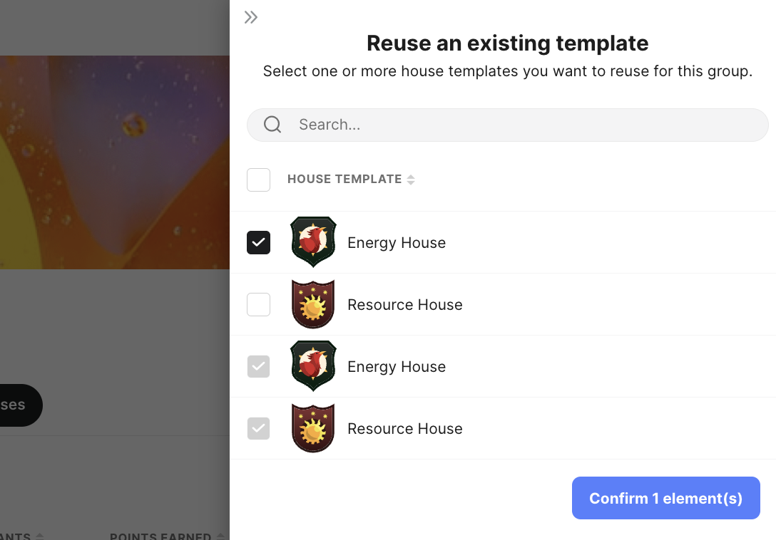 7. If you already have houses created for groups, when creating a new house, you will be provided with options to reuse an existing template or create an entirely new house.