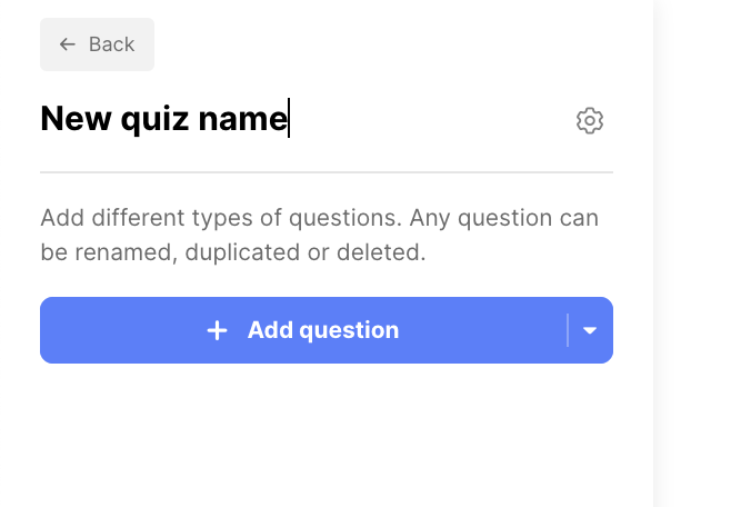 3. Add a quiz name and click on the Settings icon to adjust the quiz configuration.