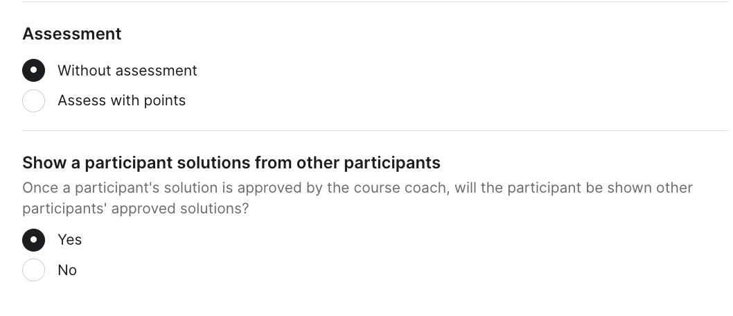 4. In the 'Settings' section, choose if you want to assess this assignment and add the maximum number of points a learner can be awarded for the task completion.