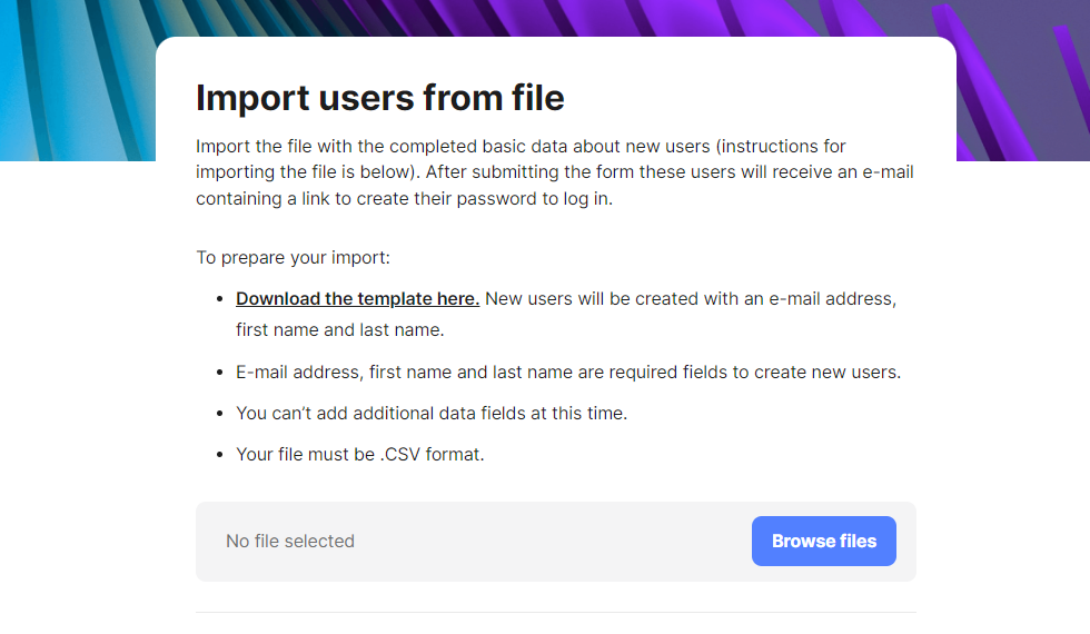 2. On the next page, download our template for submitting user information, fill in the required data, and upload it back to the system.