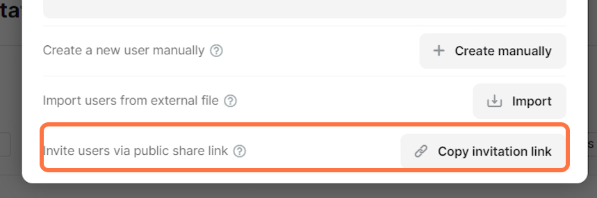 Click on ‘Copy invitation link’  and share it with users. To access the platform, they will need to proceed with the sign-up process.