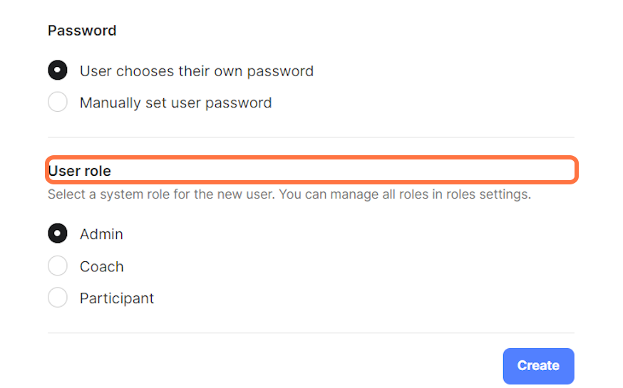 4. Select a User role and click on ‘Create’.